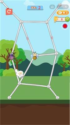 1.这是需要剪断绳索帮助蜜蜂逃生的游戏,一定要顺利的逃生才行,一个蜘蛛可是威胁着你的生命