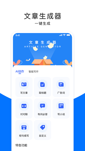 文章生成器app顾名思义就是可以自动生成文章的一款趣味工具,可以帮助许多用户解决写作难题,主要输入文章主题,文章生成器app就能自由发挥出一篇完整的内容,语句通顺,让你省了修改的麻烦。在生成文章之后,用户还能一键进行复制和粘贴,轻松使用生成的文字内容。而且这个软件还自带PDF转换工具,为用户提供更多帮助。